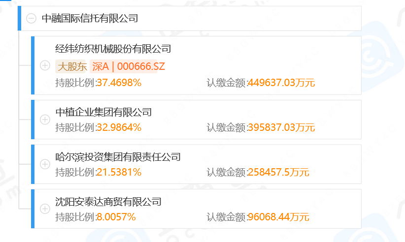 值得注意的是,据企查查显示,经纬纺机是中融国际信托有限公司(以下简称“中融信托”的大股东,持股比例约37.47%。